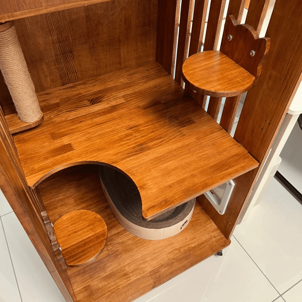 2.Wooden floors, handrails, and cabinets
